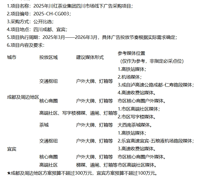 2025年川红茶业集团四川市场线下广告采购项目公开比选公告